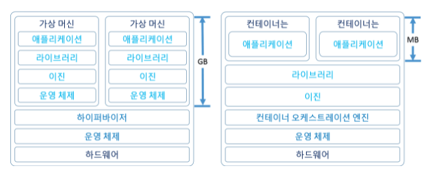 컨테이너가 VM보다 가볍다는 느낌은 위의 그림을 보더라도 느끼실 수 있을 것 같습니다.
